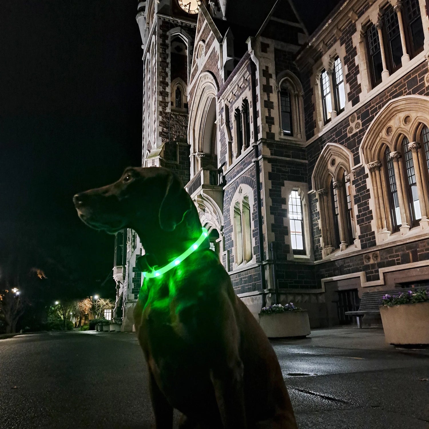 Nun, wie ich erwartet hatte, leuchtet es sehr gut, wenn die Batterie geladen ist, sodass der Hund nachts gut gesehen werden kann.